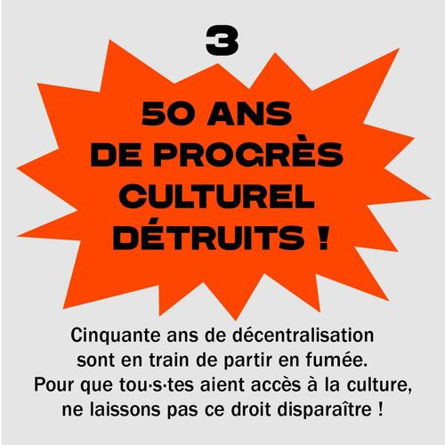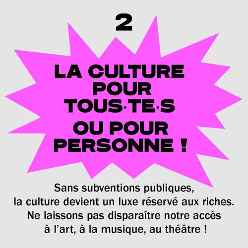 Debout pour la culture ! Depuis le mois de janvier 2025, les salles invitent le public à protester lui aussi contre ces coupes budgétaires. Alors debout, le poing levé ou verbalement, montrez votre soutien au service public de la culture et à sa diversité.