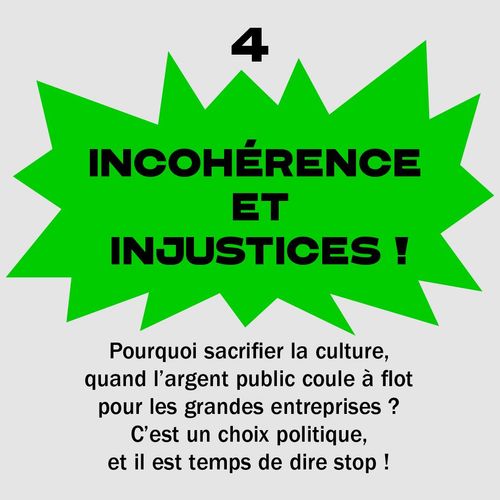 Cette décision ne fragilise pas uniquement notre structure mais aussi de nombreux maillons de la chaîne de production artistique. Elle contribue à la destruction d’un terreau économique vivant et fertile, ainsi qu’à l’appauvrissement de la vie sociale des personnes les plus démunies (étudiant·es, lycéen·nes, bénéficiaires des minimas sociaux ou vieillesse…).